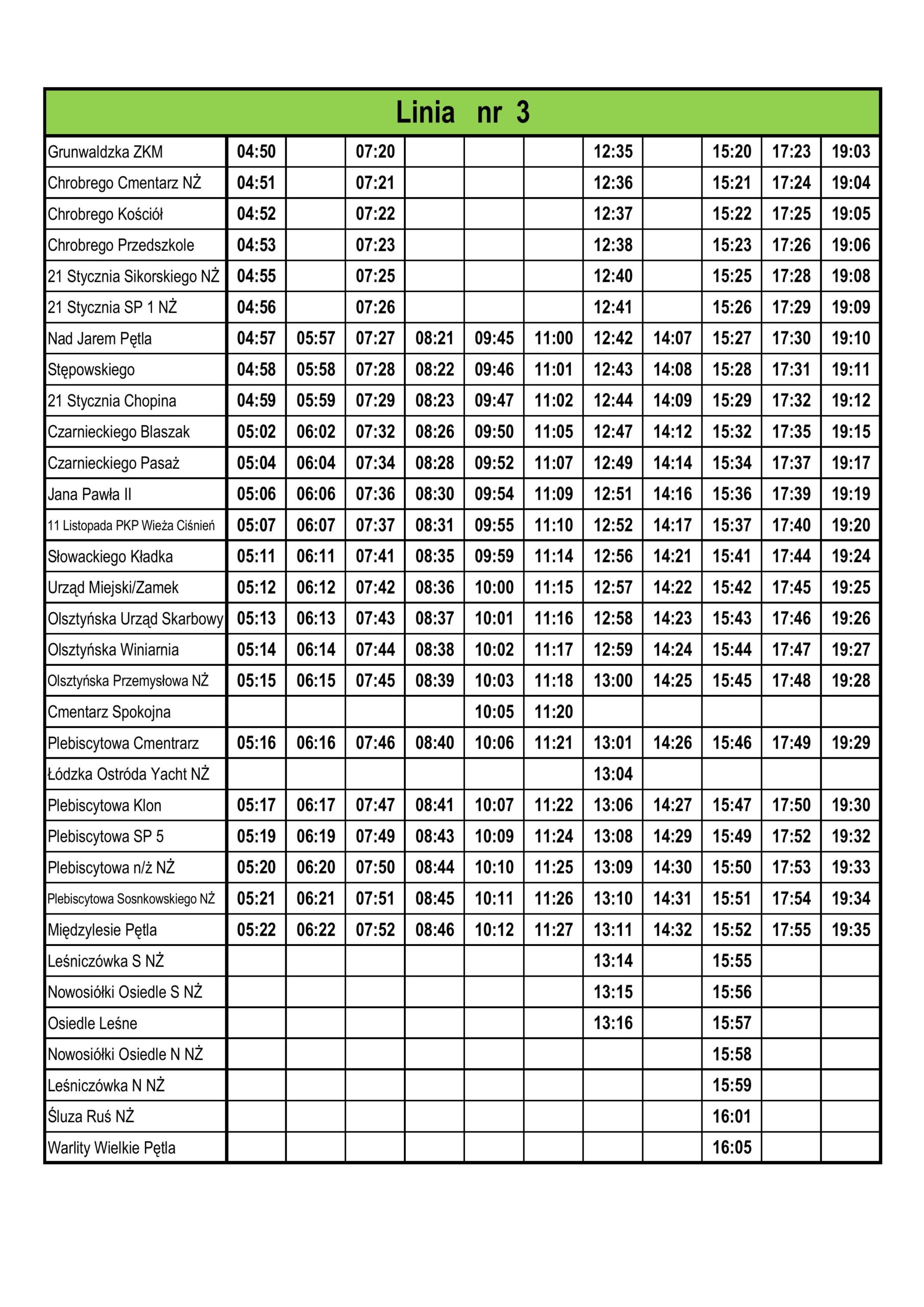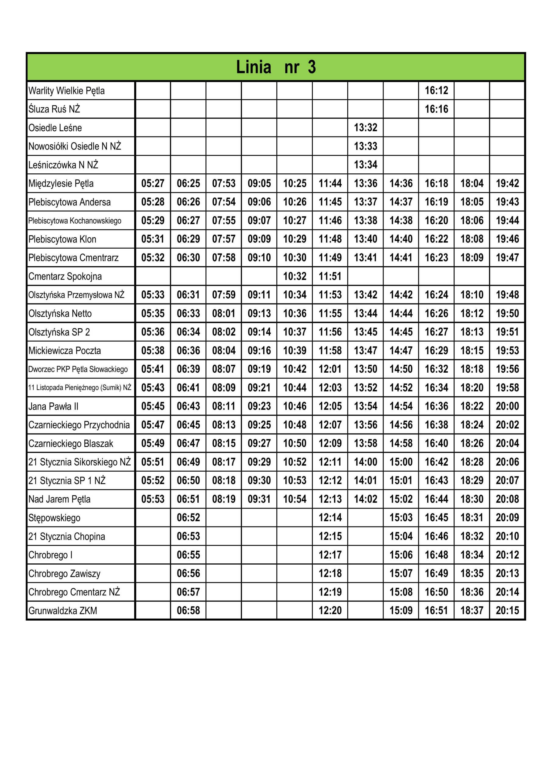 Rozkład jazdy - linia nr 3