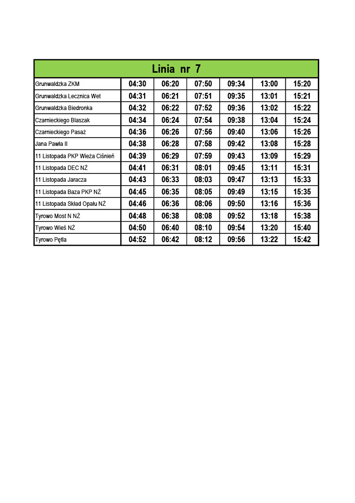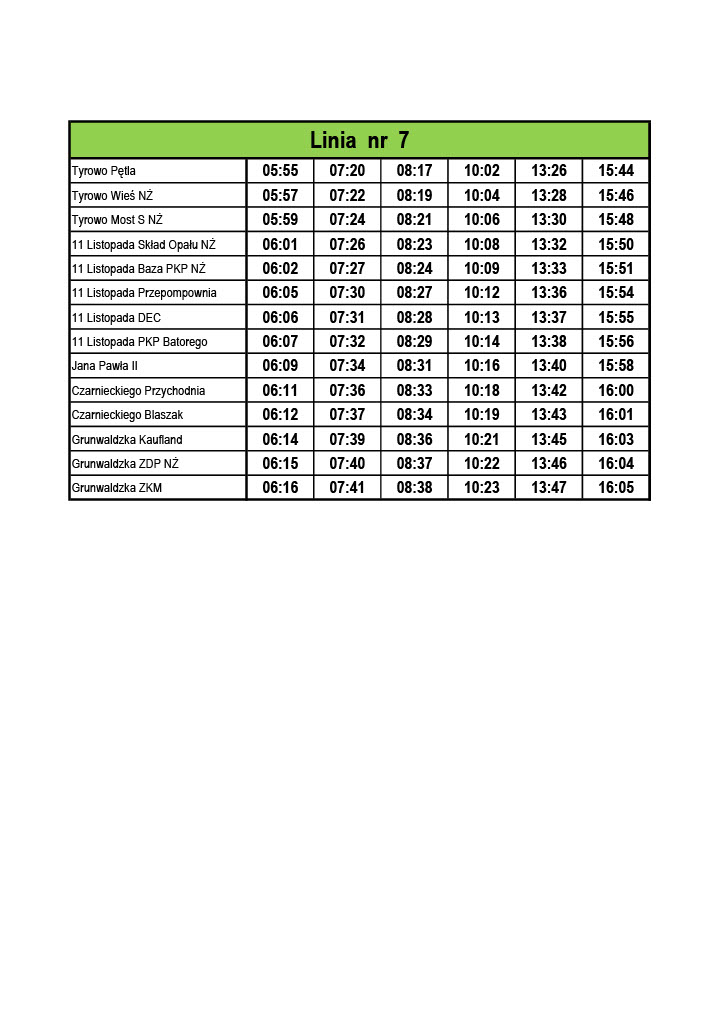 Rozkład jazdy - linia 7